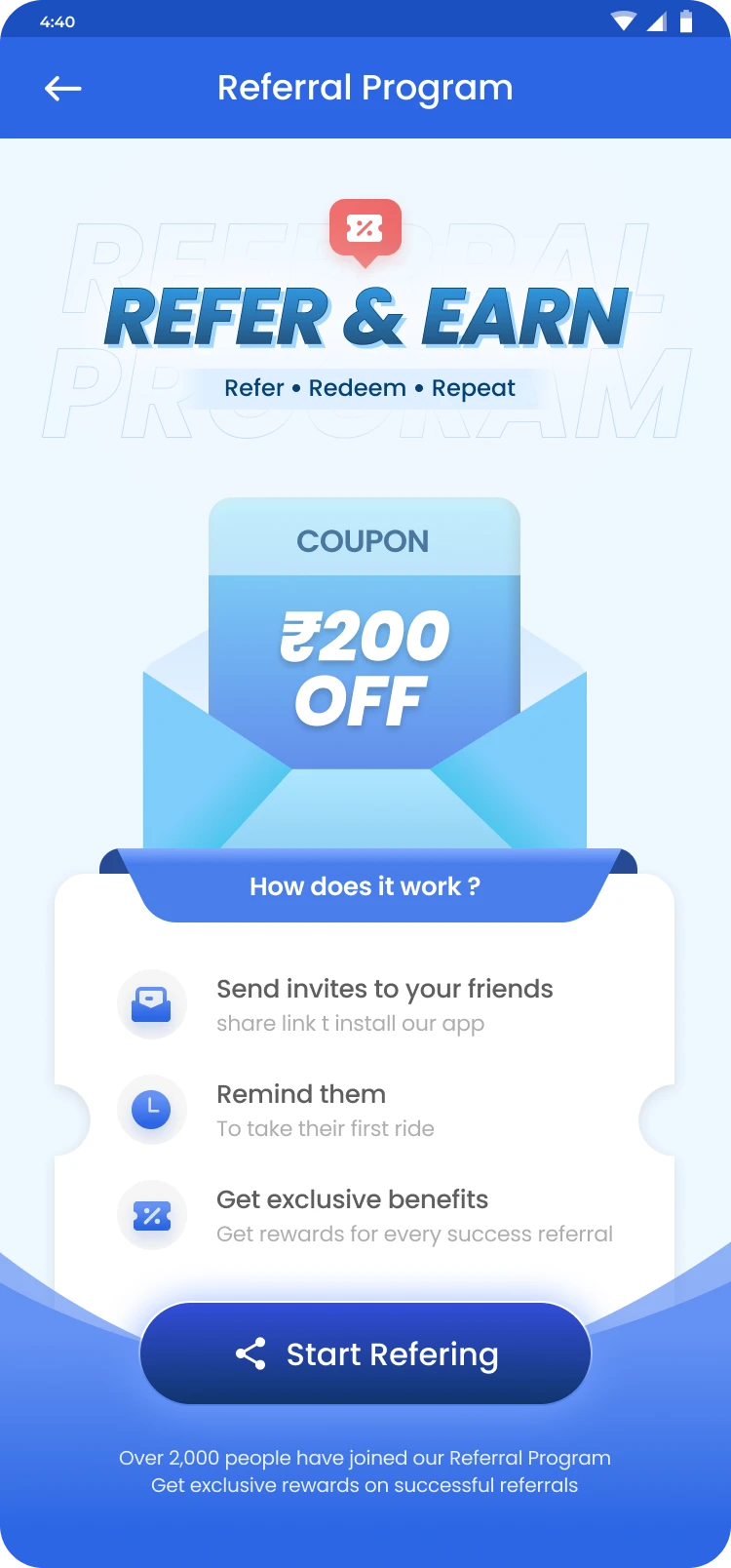 Referer will be informed about steps to referring a new user, what are the benefit and FAQs