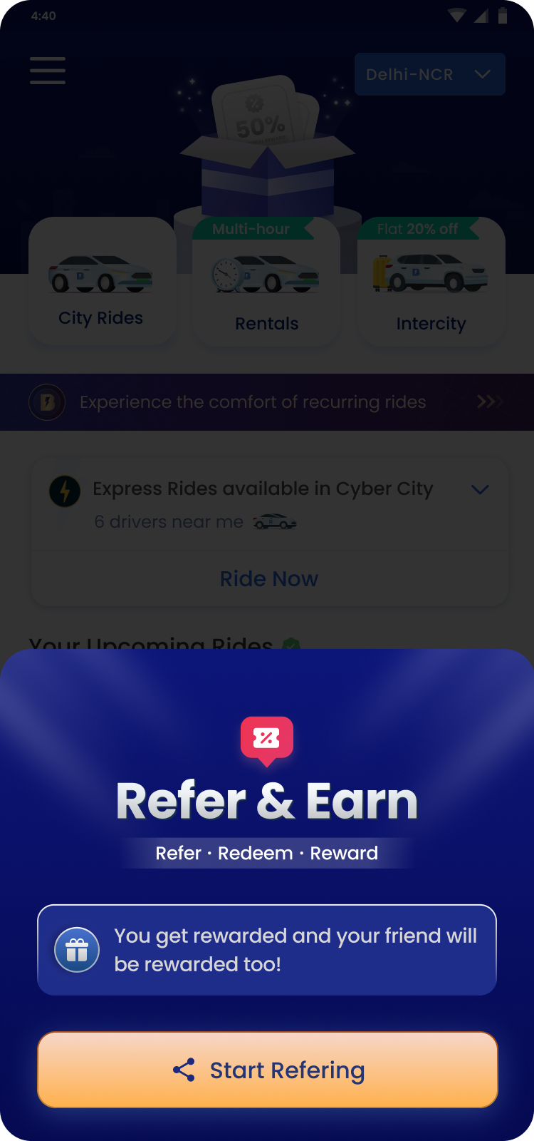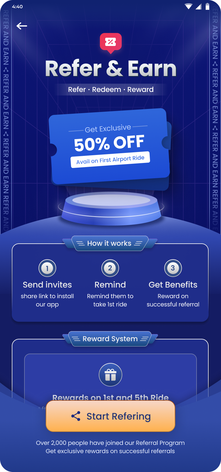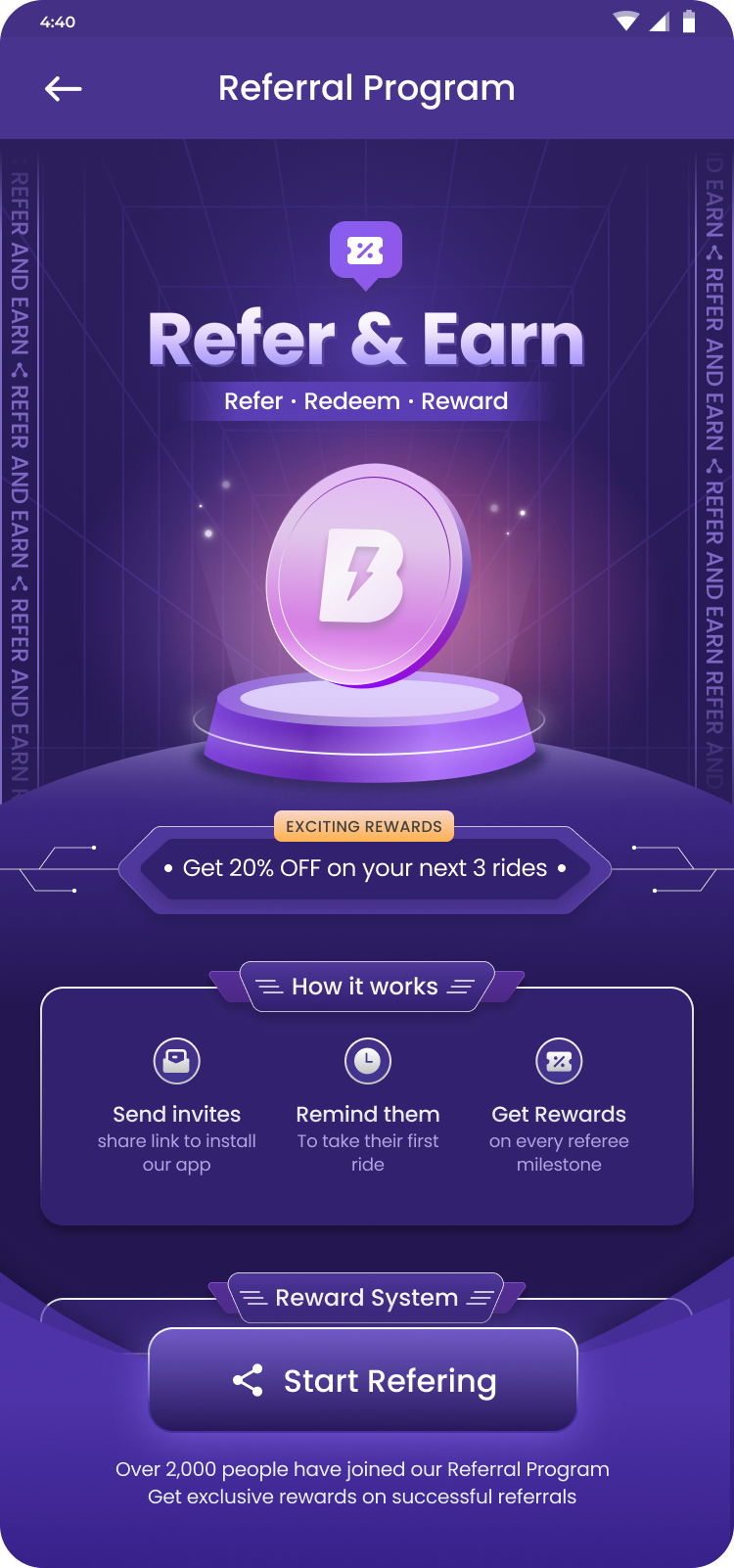 To get started referrer need to invite one user from landing page and then they can access the further flow