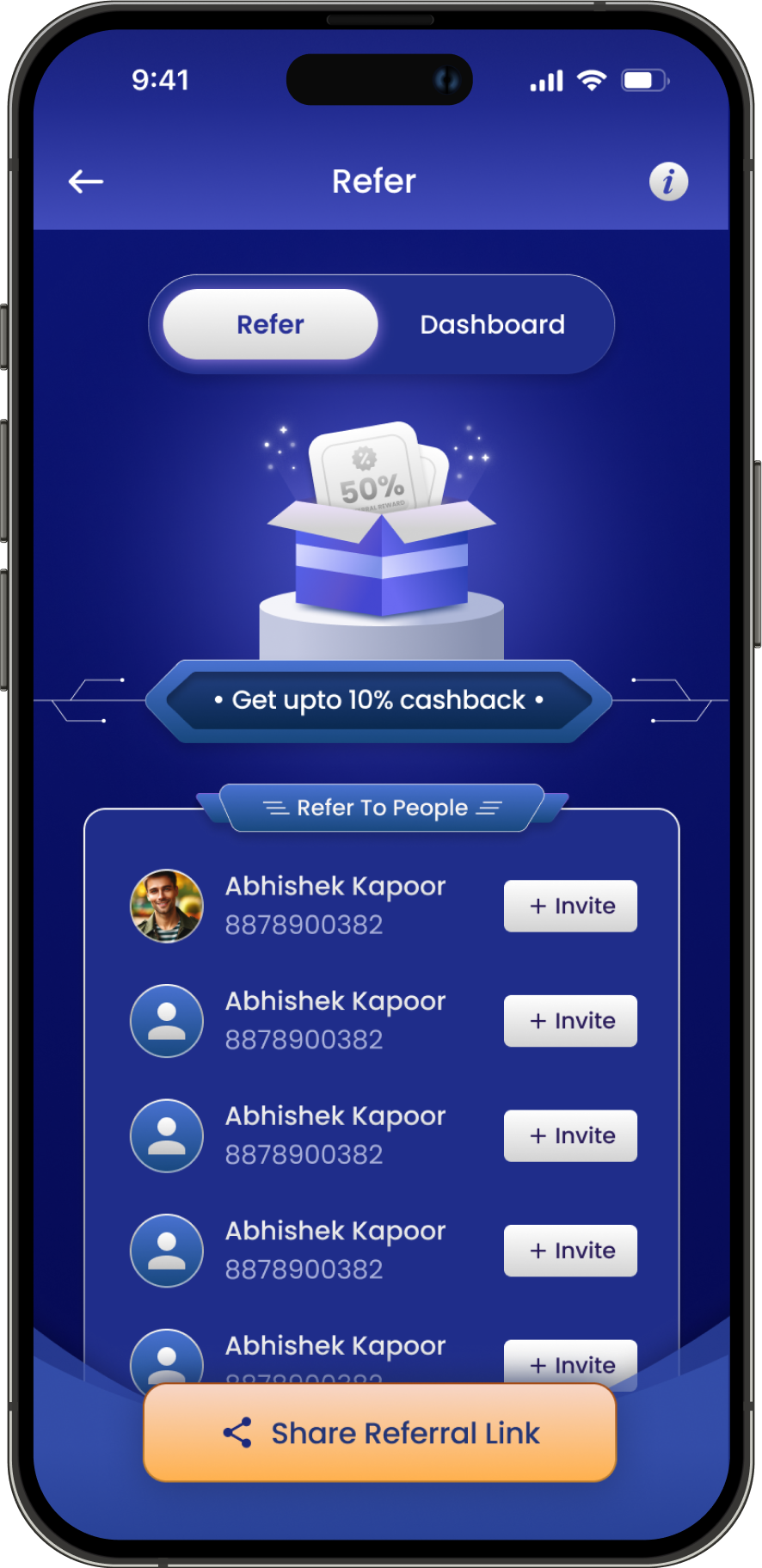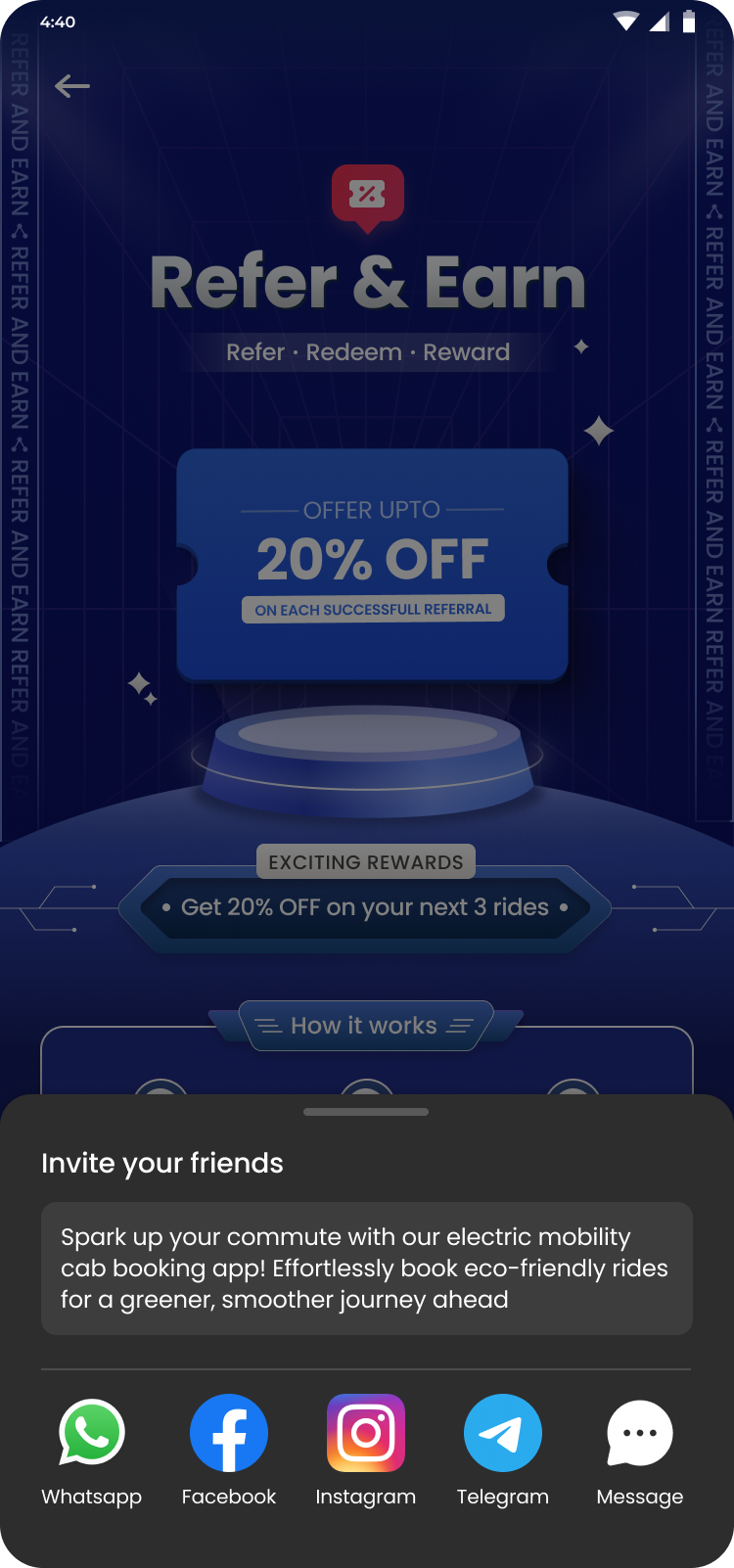 Refer section will be again emphasis first on rewards and then list of contact to invite them